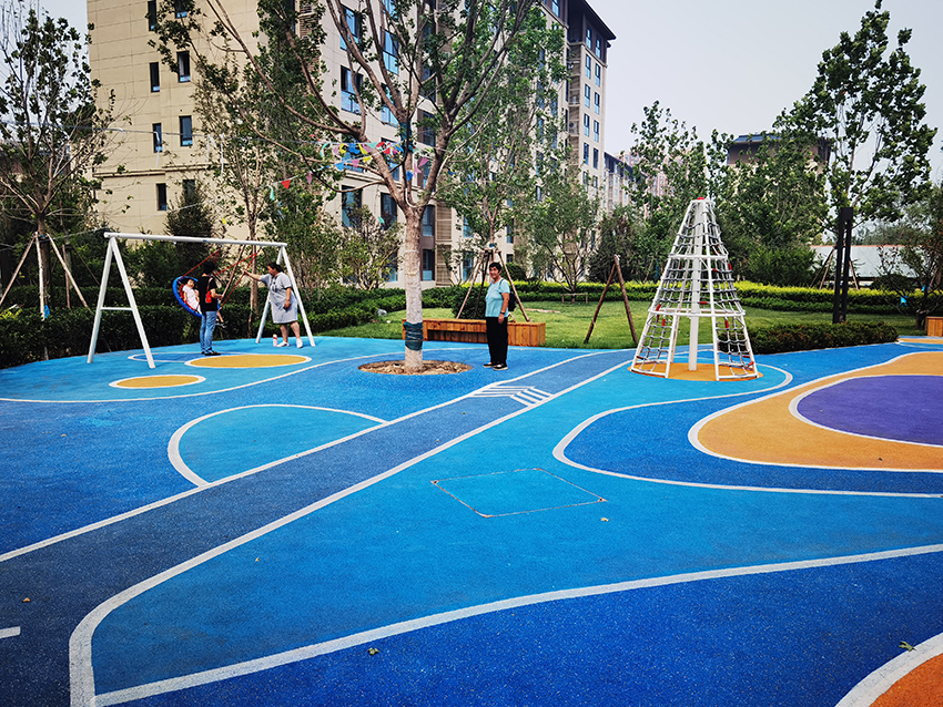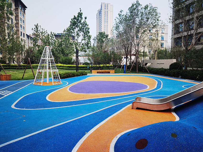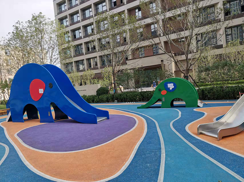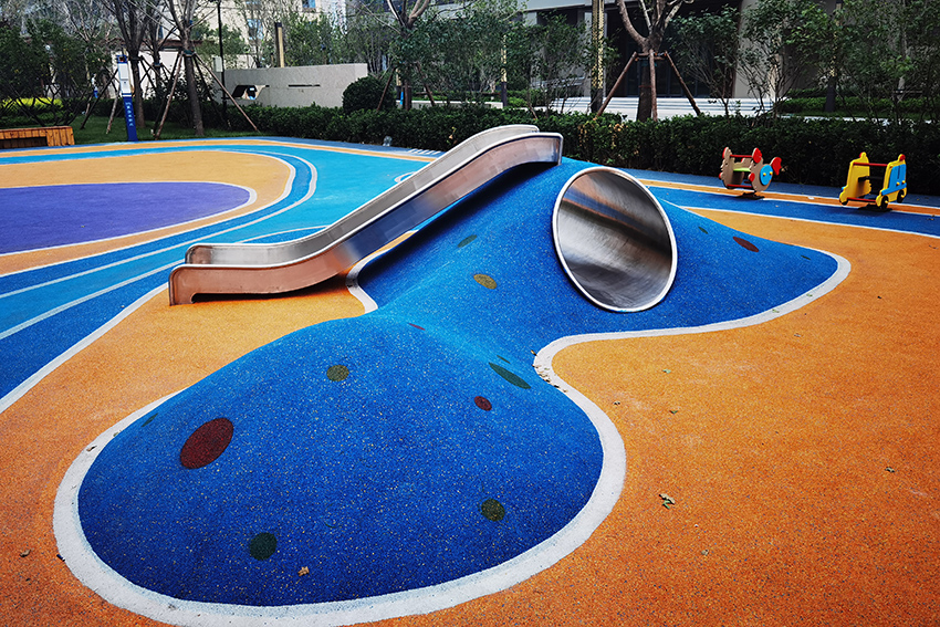 北京亦莊首創(chuàng)遠洋禧瑞天著社區(qū)的主題樂園位于社區(qū)內(nèi)的中心廣場,廣場采用橡膠地面,擁有微地形樂園,可以讓孩子鉆爬,也有滑滑梯,還有動物造型的小滑梯,秋千架,攀爬架等,可以讓孩子們自有玩耍。